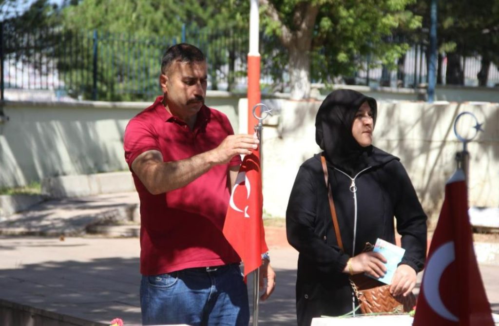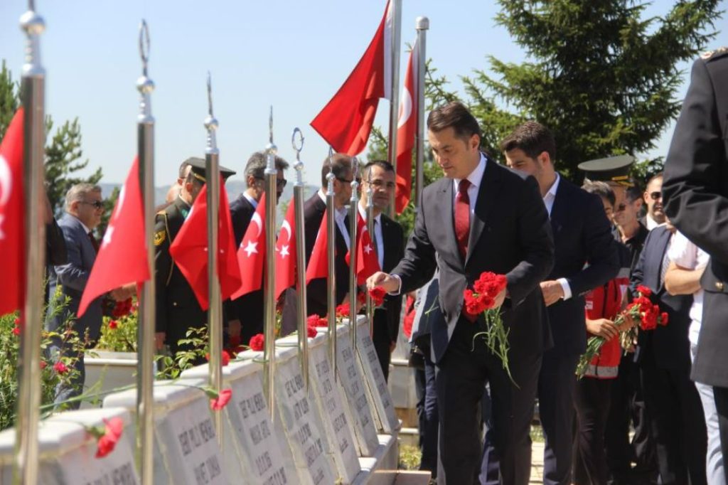 Sivas’ta Kurban Bayramı arefesinde şehit mezarları il protokolü tarafından ziyaret edildi. Sivas Vali Vekili Şakir Öner Öztürk, Belediye Başkan Yardımcısı Ahmet Duman, İl Emniyet Müdürü Burhan Akçay, Askeri erkân ve kurum müdürleri katıldı. İlk olarak polis şehitliği ziyaret edildi. Kur’an’ı Kerim tilavetinin okunmasının ardından protokol üyeleri şehit mezarlarına karanfil bıraktı. Daha sonra Garnizon şehitliğine geçen protokol üyeleri, burada da dua ederek şehit aileleri ile yakından ilgilenerek başsağlığı diledi. (İHA)
