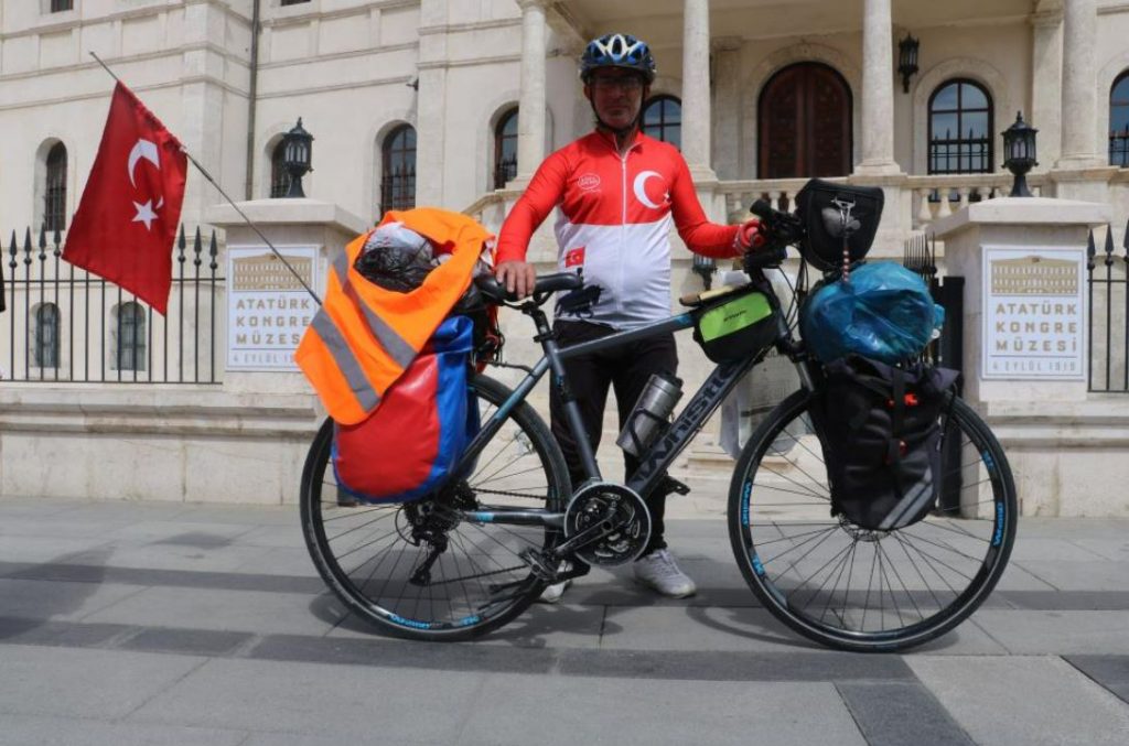 Sivas'ta 2005 yılından beri şehitlere saygı sebebiyle pedal çeviren Orhan Kotluk, 2 haftalık turunu İzmir'de Zübeyde Hanım'ın mezarında tamamlayacak.