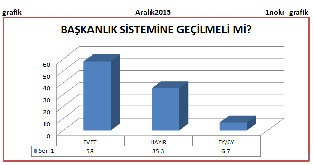 Sivas’ta Aralık 2015’te yaptığımız araştırmada, “Bu pazar seçim olsa AK Parti’ye oy veririm.” diyenlerin oranı % 70’lerdeyken Başkanlık Sistemine olumlu bakanların oyunun %58’ de kaldığını görüyoruz. Bu bize o dönemde AK Parti’ye oy veren seçmenin ciddi birbölümünün Başkanlık Sistemi ile ilgili destek vermediğini gösteriyor.(Bakınız 1ve2 nolu)