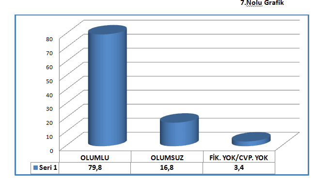 Kasım 2016’da yaptığımız araştırma, diğer çalışmalarımıza nazaran daha büyük önem arz etmektedir. Çünkü Başkanlık Sistemi tartışmaları Sayın Devlet Bahçeli’nin açıklamaları ile fiiliyata dökülmeye başlamış, konunun teknik detayları ortaya çıkmıştır. Model de Partili Cumhurbaşkanlığı yani dünyadaki ismi ile Yarı Başkanlık Sistemi’nde karar kılınmıştır. Elbette yaşanan bu gelişmelere, halkın verdiği cevaplar büyük önem taşımaktadır. Öncelikle Devlet Bahçeli’nin tutumu Sivas halkı tarafından % 80 civarında olumlu karşılanmıştır. .(Bakınız 7 nolu grafik)