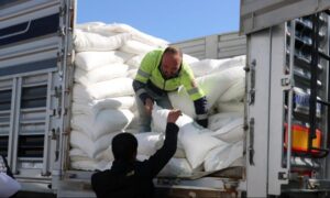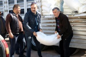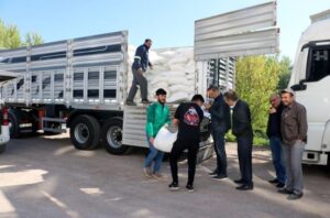 Bizim tarlacı diye tabir ettiğimiz arılarımızın tarlalardan bol miktarda nektar taşıyabilmesi için çok arıya ihtiyacımız var. Bu bugün 25’inci tır toplamda 840 ton şeker dağıtmış olacağız. İnşallah arıcılarımıza hayırlı olur.