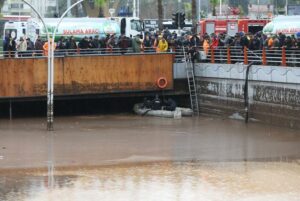 Öte yandan Abide Kavşağı da yağış nedeniyle görünmez hale geldi. Alt geçit su ile dolup taşarken, dalgıç polisler burada da çalışma başlattı.