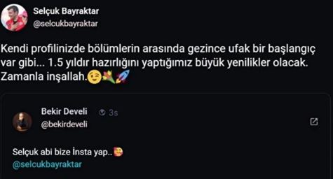 Sunucu Bekir Develi’nin “Instagram benzeri uygulama yapılacak mı?” sorusuna da cevap veren Bayraktar, “Kendi profilinizde bölümlerin arasında gezince ufak bir başlangıç var gibi... 1.5 yıldır hazırlığını yaptığımız büyük yenilikler olacak. Zamanla inşallah” diyerek yerli sosyal medya alanında atılacak daha büyük adımların sinyalini verdi.