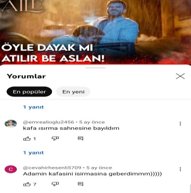 Vartolu Sadettin karakteri silahlar patlarken elinde mendil müzik eşliğinde halay çekerek şiddetten haz alan bir hale büründürülmüştür. Aile dizisinde espriler eşliğinde birisi dövülerek yüzü tanınmayacak hale gelmekte ve dayak atan kişilerin sempatik tavırlarıyla şiddet eğlenceli hale getirilip sempatikleştirilmiştir. Dizide Kıvanç Tatlıtuğ’un birini döverken kafa tasını ısırma sahnesinde sosyal medyada yapılan yorumlarda şiddet sahnesinin komikliğinin vurgulanması yazılanları ne kadar da doğrular nitelikte ...