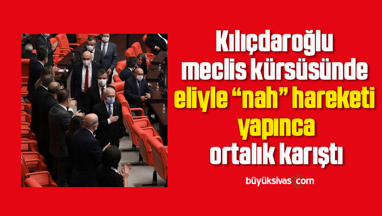 Kılıçdaroğlu'nun konuşması AK Parti ve MHP sıralarından yükselen uğultular ve sataşmalarla bölündü. AKP ve MHP sıralarından sık sık, “‘Burada bayanlar var”, “Yaptığınız el hareketi nedeniyle özür dileyin” şeklinde sesler yükseldi. Uğultuların devam etmesi üzerine TBMM Başkanı Mustafa Şentop, “Bir dakika sessiz olur musunuz” diyerek AK Parti ve MHP'li milletvekillerini uyardı. Seslerin yükselmesi üzerine Şentop, “AK Parti ve MHP sıralarına “Siz konuşun o zaman ben gideyim” diye sitem etti.