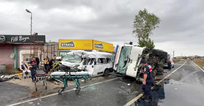 Servis minibüsü ile kamyon çarpıştı! 3 ölü! 7 yaralı!
