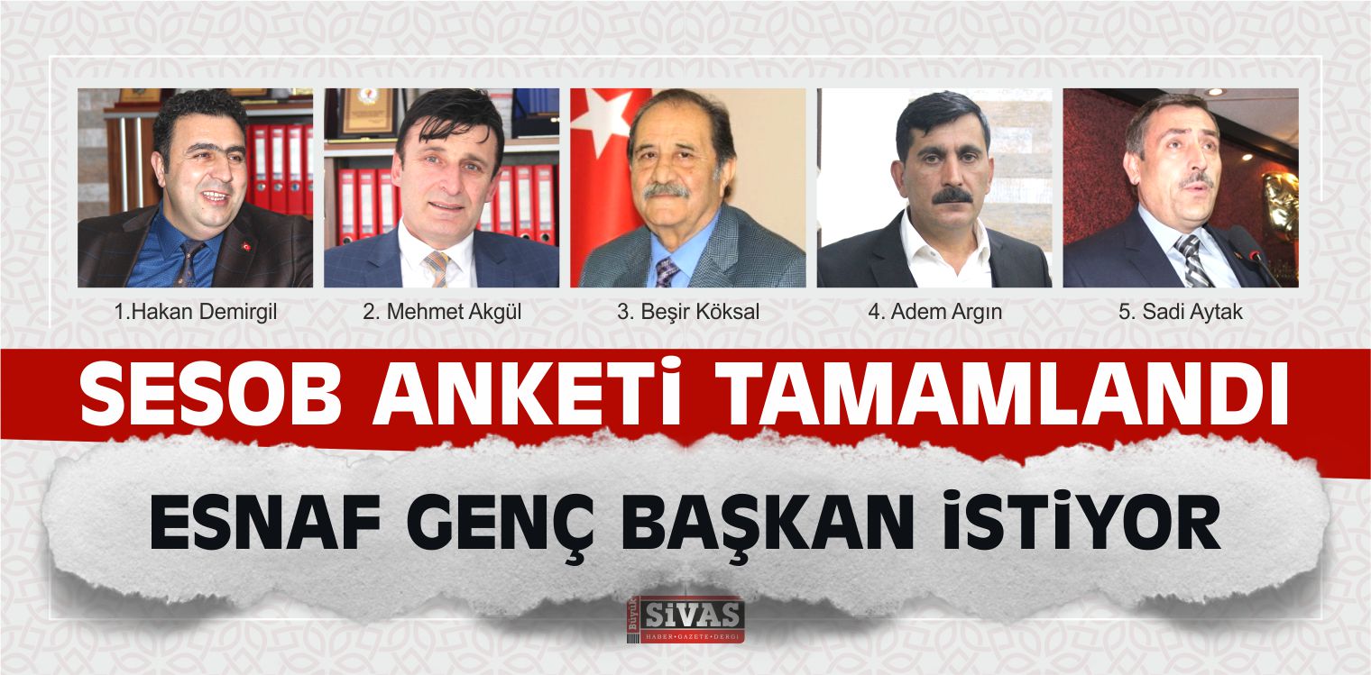 SESOB’a bağlı odalardan Sivas Tesviyeciler ve Madeni Sanatkarlar Esnaf Odası Hakan Demirgil’in ve Sivas Yiyecek Maddeleri Yapanlar ve Satanlar Esnaf Odası Başkanı Mehmet Akgül’ün çok yakın oya sahip olması, yeni dönemde başkanlık için isimlerinin seçmenleri tarafından istendiği yorumuna sebep oluyor. Aynı şekilde mevcut başkan Beşir Köksal’ın hemen bu 2 ismin azda olsa gerisinde olması dikkat çekiyor.