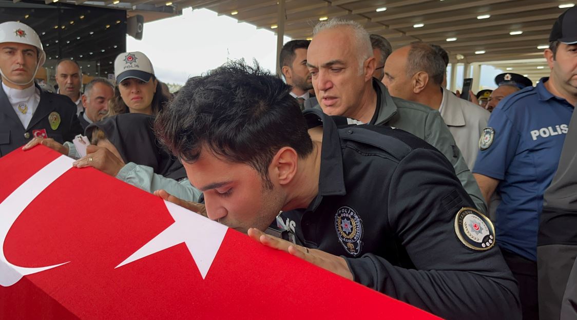 Semih Yılmaz şehit eşi Şeyda Yılmaz'ın tabutunu öperek uğurladı