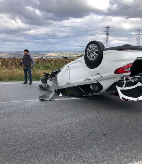 Kaza, dün akşam saatlerinde Hadımköy - Dursunköy yolunda meydana geldi. İddiaya göre, seyir halindeki aracın lastiklerinden biri su kanalının oluşturduğu boşluğa düştü. Boşluğa düşen lastik nedeni ile dengesi bozulan otomobil takla attı.