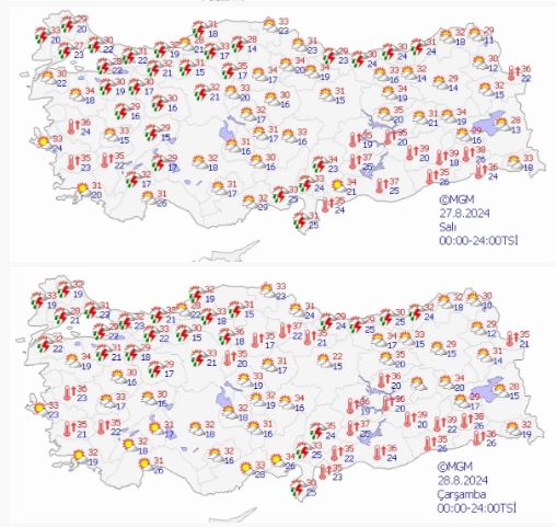 Hava sıcaklıklarında önemli bir değişiklik beklenmezken, yağışlı havanın etkisini göstermesi ile birlikte kavurucu sıcaklarda hissedilir derecede azalma olması bekleniyor.