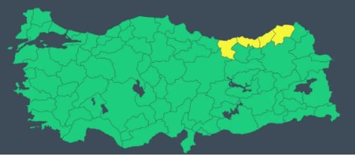 Meteoroloji tarafından 4 ile ise sarı uyarı verildi. Uyarı verilen iller arasında, Giresun, Trabzon, Rize ve Artvin yer aldı.