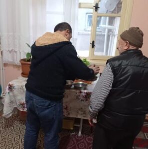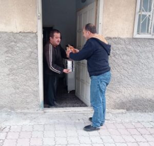 Muhtar kapı kapı gezip sıcak yemek dağıtıyor