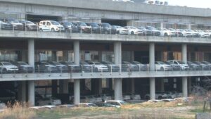 İnşaat halindeki otoparka stoklanan sıfır otomobiller