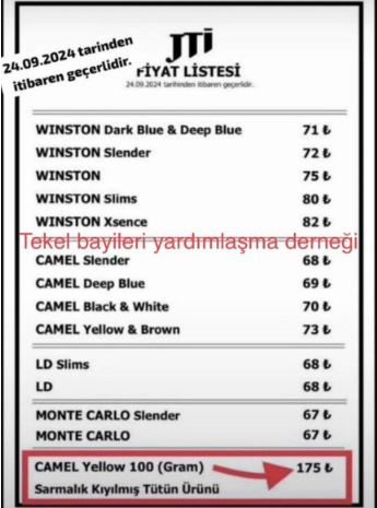 Tekel Bayileri Yardımlaşma Derneği Başkanı Erol Dündar, sosyal medya üzerinden yaptığı açıklamada, JTI marka Camel tütünlerine 10 lira zam yapıldığını duyurdu. Böylece güncel fiyat 175 TL'ye yükseldi. Bu zam, yarından itibaren geçerli olacak.