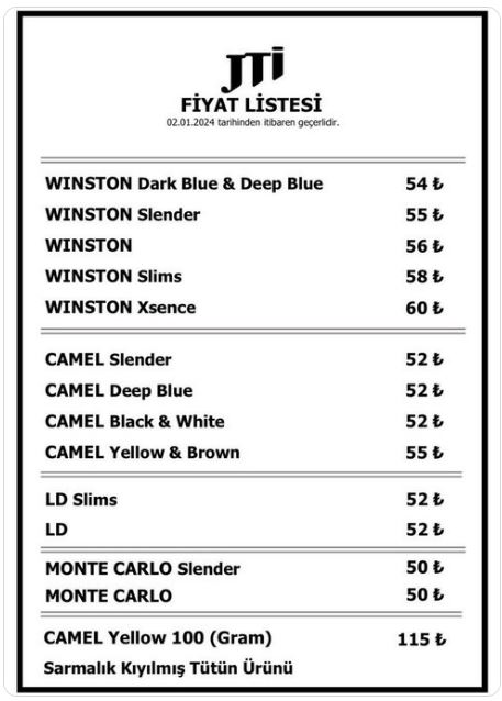 JTI grubuna ait sigaraların fiyatları güncellendi.