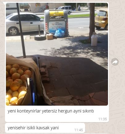 "yeni konteynirlar yetersiz hergun ayni sıkıntı. yenisehir isikli kavsak yani"