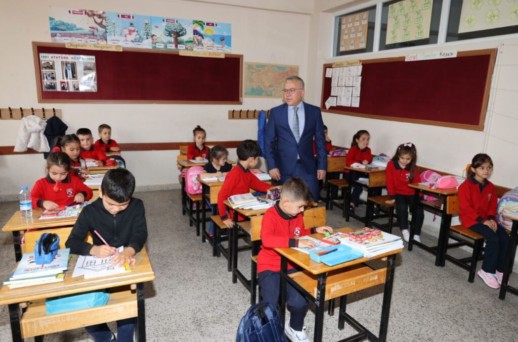 Okula yeni başlayan çocukları ziyaret eden Vali Şimşek, tüm öğrencilere eğitim hayatlarında başarılar diledi.