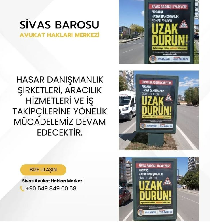 Sivas Barosu, bu tür şirketlerin vatandaşların kişisel bilgilerini yasa dışı yollarla ele geçirerek, trafik veya iş kazası mağdurlarına ulaşıp hak ettikleri tazminatların çok altında anlaşmalar yaptırdıklarını, yüksek oranda “vekâlet ücreti” adı altında haksız kazanç elde ettiklerini belirtti.