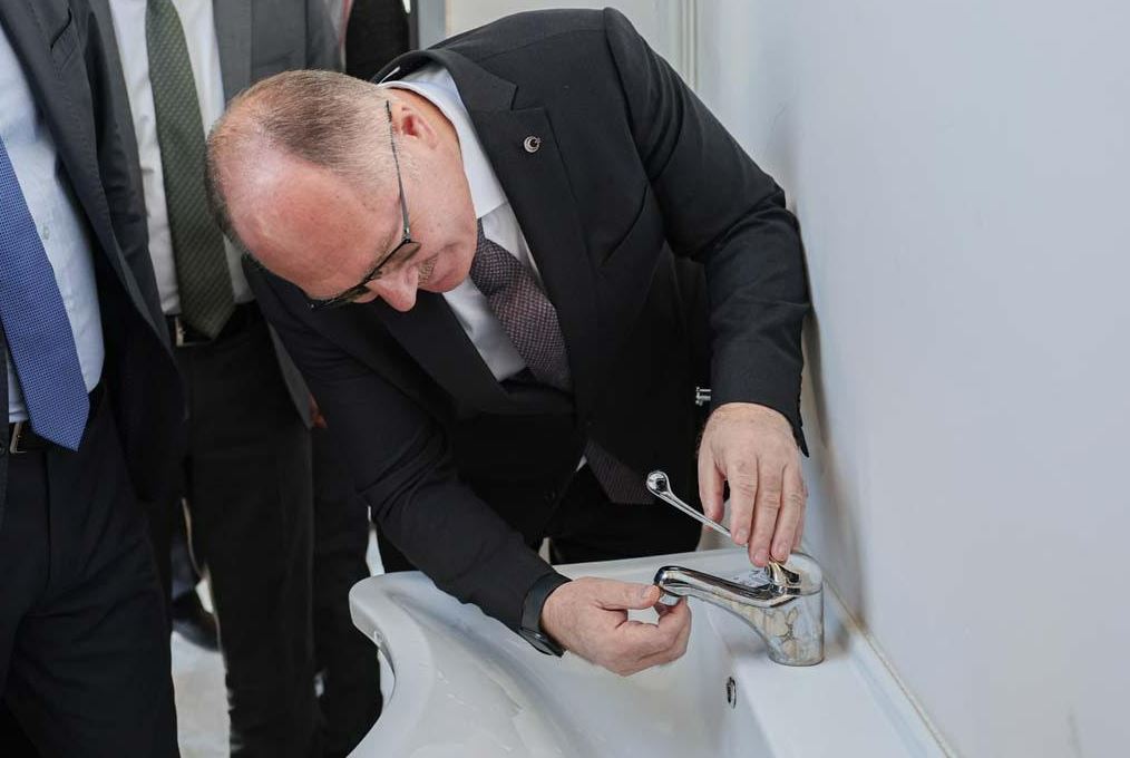 Konuşmaların ardından yurttaki lavabolara tasarruf aparatı takıldı.