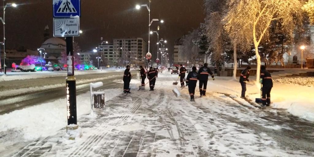 Sivas Belediye Başkanı Hilmi Bilgin'in talimatıyla dün akşam saatlerinden itibaren yoğun bir şekilde yağan karın ardından Belediye ekipleri ve araçları hızla çalışmalarına başladı.