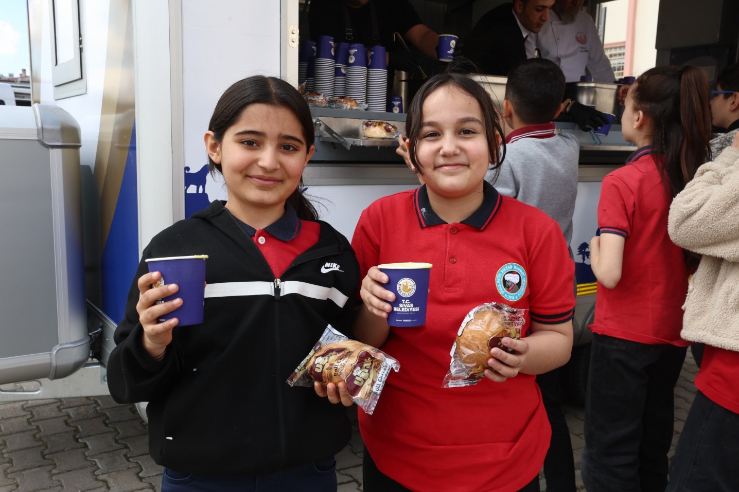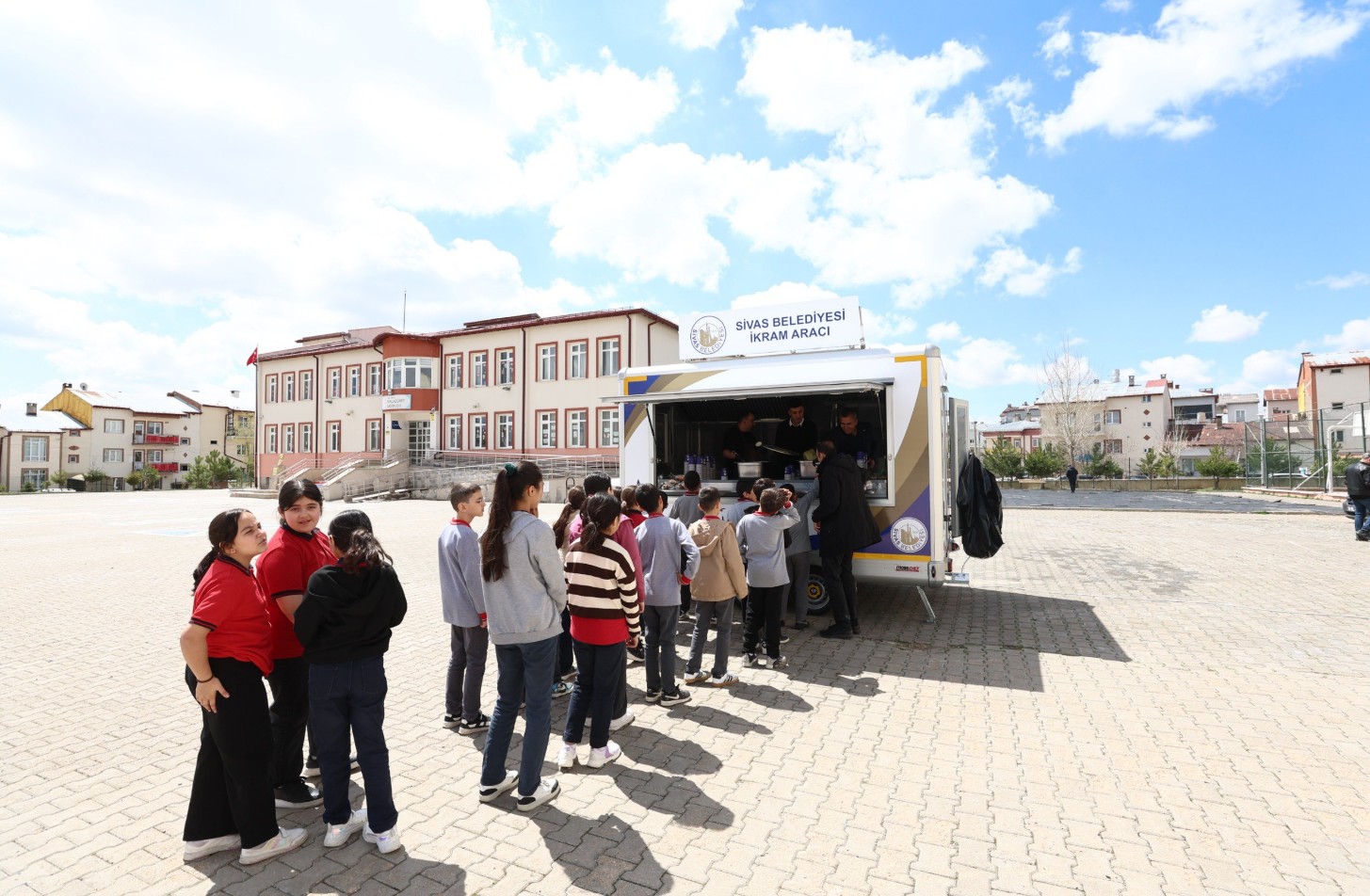 Bu kapsamda belediyeye ait ikram aracı, Alibaba Mahallesi’nde öğrencilerle bir araya geldi.
