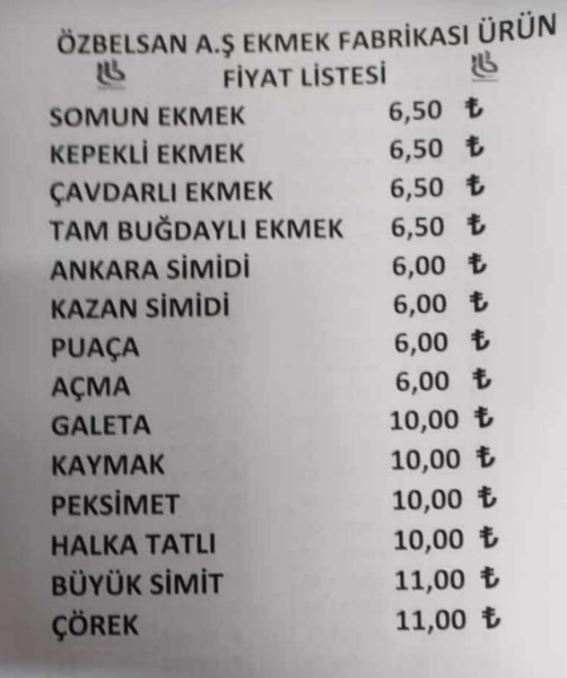 Yapılan zam sonrasında Özbelsan büfelerinde ekmek 6,5 liradan satılacak...