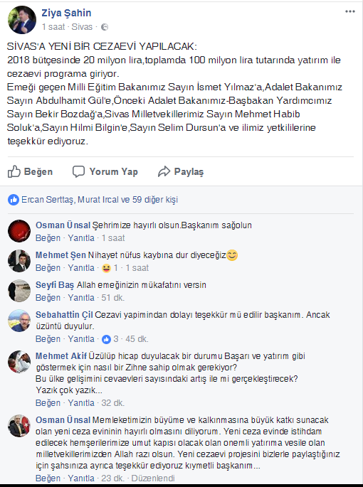 AK Parti Sivas İl Başkanı AVUKAT Ziya Şahin, Sivas'a müjdeyi verdi. Şahin, "Sivas Cezaevi 100 Milyonluk Yatırım Olacak"... Sivas'a yeni bir cezaevi yapılacak...