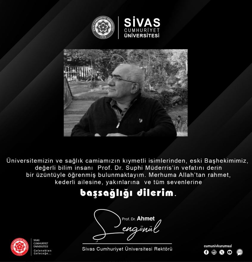Sivas Cumhuriyet Üniversitesi, sağlık camiasının saygın isimlerinden biri olan eski başhekim ve değerli bilim insanı Prof. Dr. Suphi Müderris’in vefat haberiyle derin bir üzüntü yaşadı.