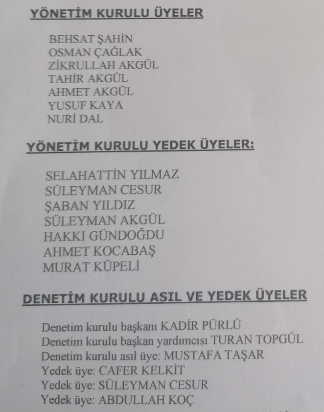 Yönetim Kurulu listesi ise şöyle şekillendi;