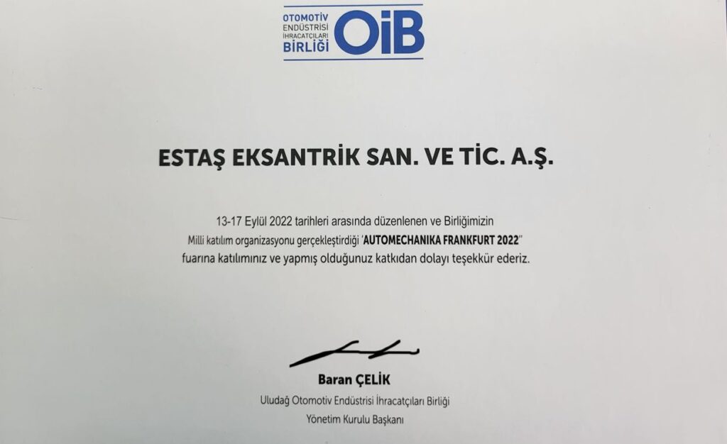 Her geçen gün başarısına başarı katan Estaş son olarak, Automechanika Almanya fuarına katılarak burada "Milli katılım" sertifikası aldı.
