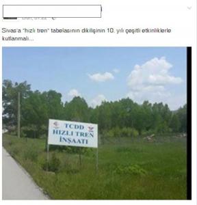 Bunun üzerine Sivas’ta da hızlı trenin geçeceği alanlara o zamanlardan beri “TCDD HIZLI TREN İNŞAATI” yazılı tabelalar asıldı.