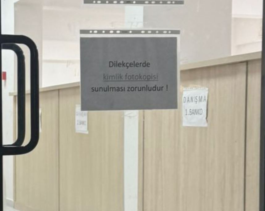 Kapıdan girişte “Kimlik Fotokopisi” uyarısıyla karşılaşan vatandaşlar, kurumda fotokopi cihazının bulunmamasından dolayı zaman ve emek kaybı yaşıyor.