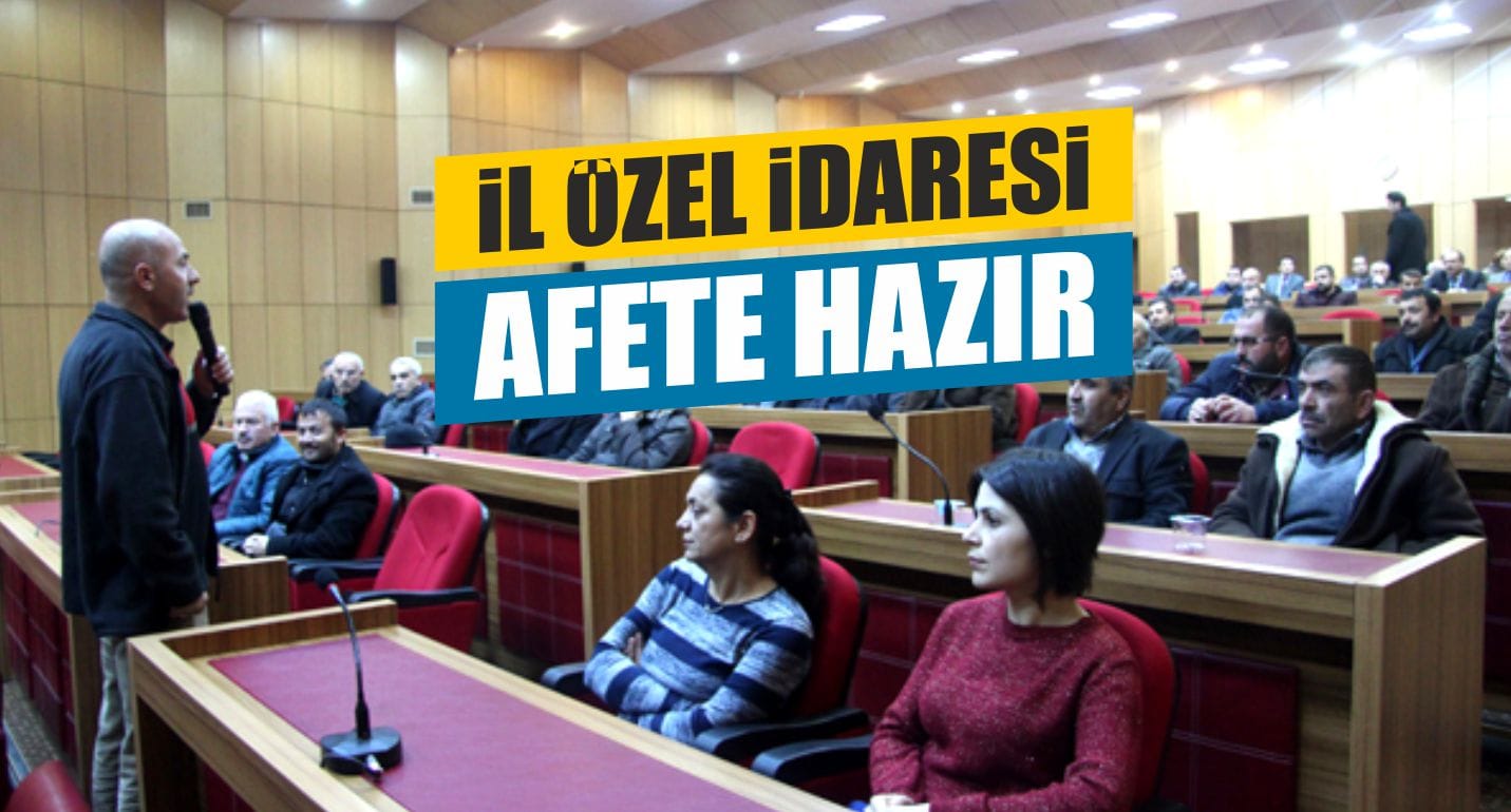 İl Genel Meclisi Toplantı Salonunda gerçekleştirilen eğitimlerde personellerimize ilk olarak deprem ve ülkemizde sıkça görülen afetlere yönelik olarak, afetlerin öncesinde ve sonrasında yapılacak doğru davranışlar anlatıldı.