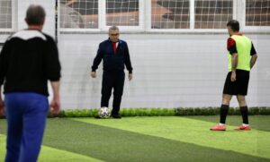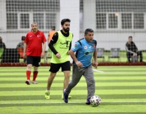 Sivas Valisi Dr. Yılmaz Şimşek, Sivas Belediye Başkanı Hilmi Bilgin ve il protokolü, sağlık çalışanları ile bir araya gelerek halı saha maçı yaptı.