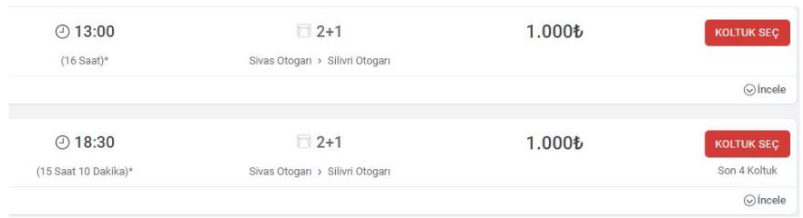 Otobüs fiyatları;