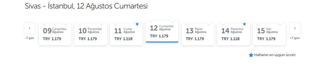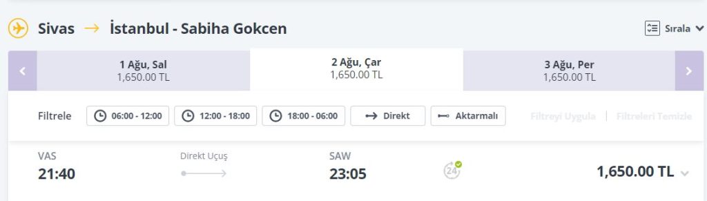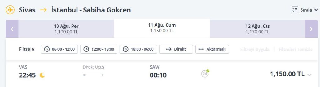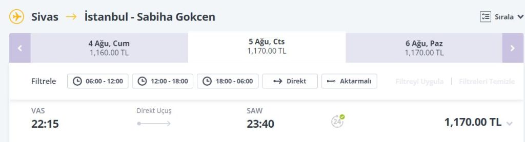 Uçak fiyatları ise 1.100-TL'den başlıyor ve yolculuk süresi yaklaşık 1,5 saat işte uçak fiyatları;