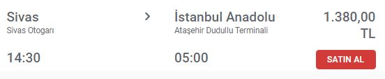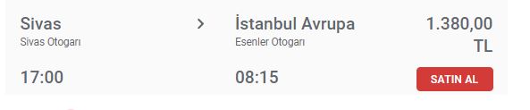 Sivas-İstanbul Otobüs Biletleri 1500-TL'ye Yaklaşıyor!