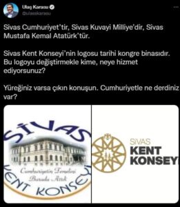 Kent Konseyi logosunda yer alan Cumhuriyetin temellerinin atıldığı Sivas kongre binası resmi logodan çıkarıldı.