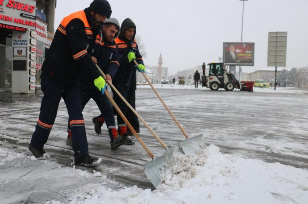 Sivas’ta beklenen kar yağışı akşam saatlerinde etkisini göstermeye başladı. Lapa lapa yağan kar gece saatlerinde de devam etti. Kentin dört bir yanı beyaza bürünürken Sivaslılar bembeyaz bir güne uyandı. Tarihi kent meydanında kartpostallık görüntüler oluştu. Sivas Belediyesi ekipleri ise kar temizleme çalışmalarına başladı. Kaldırımlarda ve yollarda bulunan karlar temizlenerek tuzlama işlemi yapıldı. Vatandaşlar ise kar yağışına sevindiklerini söyledi.-iha