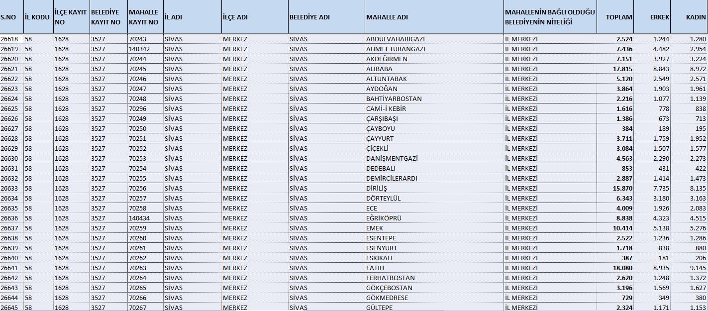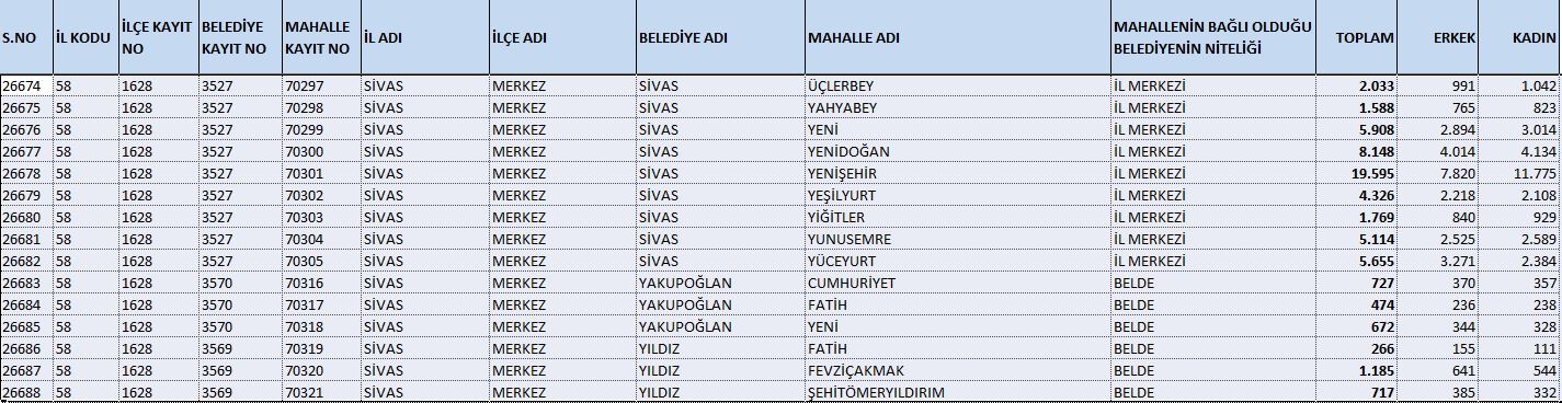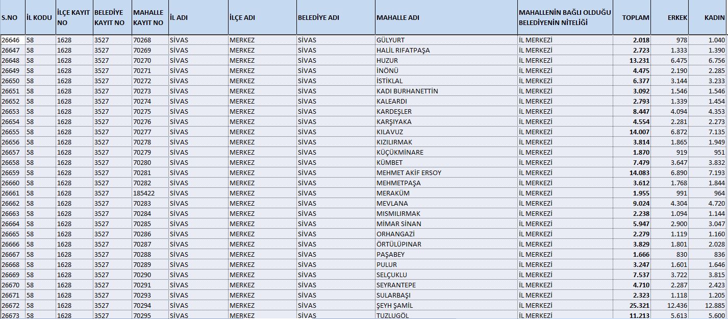Sivas nüfus, TÜİK Sivas nüfus, Sivas mahalle nüfusları 2025, Sivas merkez mahalleleri, ADNKS 2025 Sivas, Sivas istatistik, Sivas yerleşim verileri