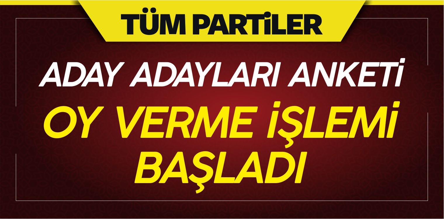 Parti ayrımı yapmaksızın her siyasi partinin aday adaylarına yer verilen anketimiz 1 hafta boyunca devam edecek.