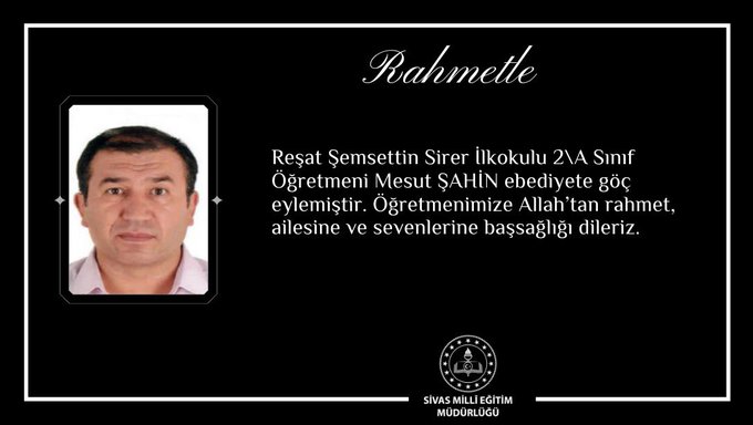 Yapılan açıklamada: " Reşat Şemsettin Sirer İlkokulu 2/A Sınıf Öğretmeni Mesut Şahin ebediyete göç eylemiştir. " ifadelerine yer verildi.