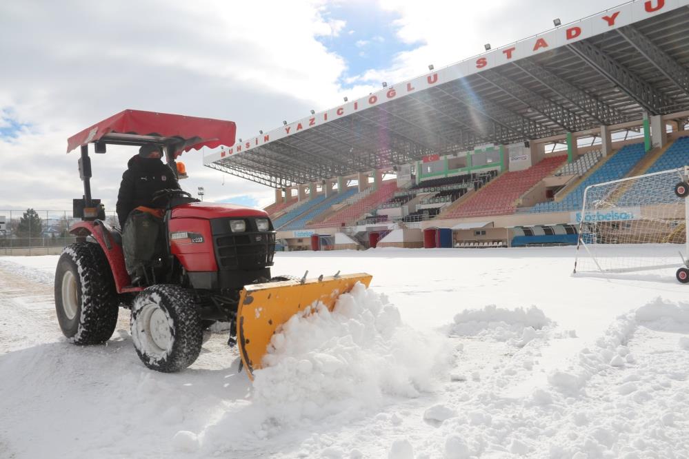 Sivas Belediyespor ile Serik Belediyespor’un mücadelesine ev sahipliği yapacak olan Sivas Muhsin Yazıcıoğlu Stadyumu, tamamen karla kaplandı.