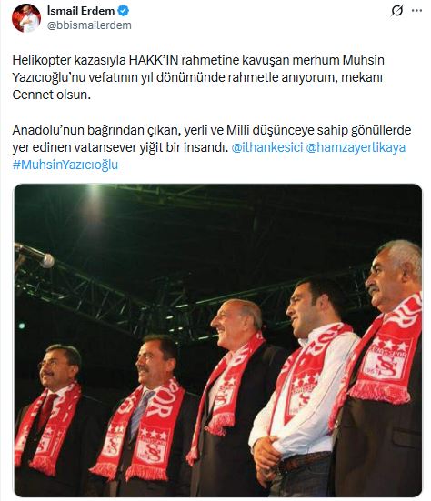 Aynı zamanda Sancaktepe Kurucu Belediye Başkanı ve Sivas Platformu Başkanı olan Erdem, paylaşımında Yazıcıoğlu’nun Türk siyasi hayatındaki yerine ve kişiliğine dikkat çekti.