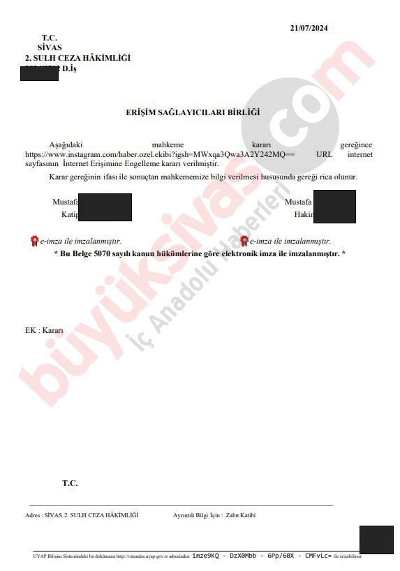 Bugün ise Salihoğulları firması erişim sağlayıcılar birliğine iletilmek üzere aleyhte kampanya yürüten sosyal medya hesabı için erişim engeli kararı aldırdı.