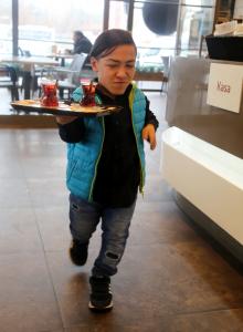 Mutlu, müşterilere çay veya yiyecek götürürken de dans eden ve kendisiyle barışık olan Ahat'ın bu davranışının müşterilerin de çok hoşuna gittiğini dile getirdi.(AA)