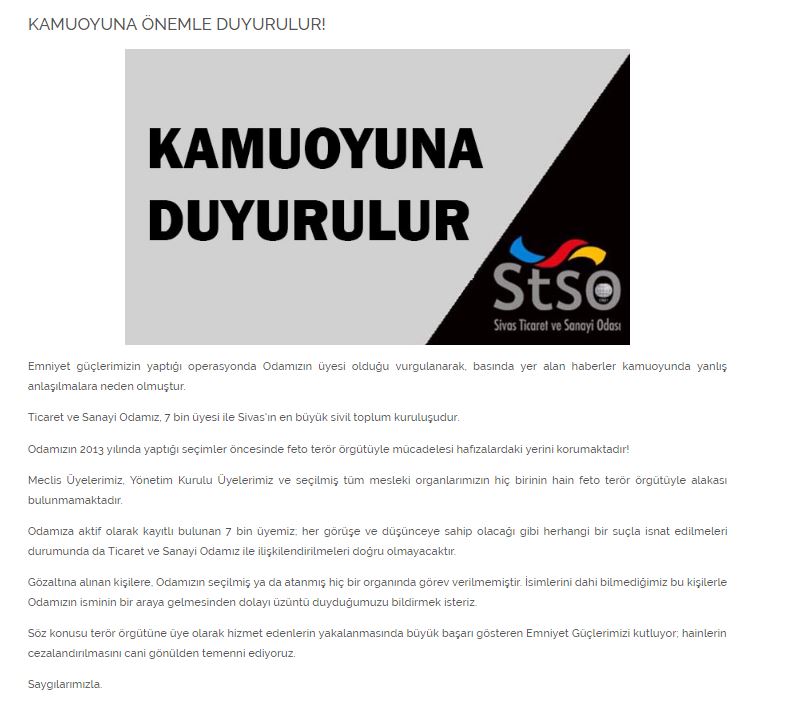 STSO resmi internet sitesinden “kamuoyuna önemle duyurulur” başlığı ile gündeme taşınan haber şu şekilde;