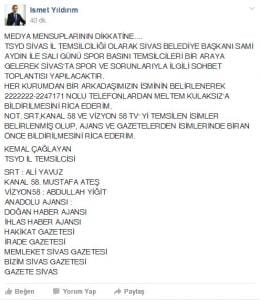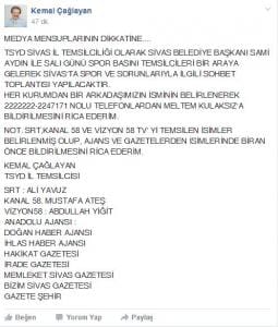 Sivas'ta yayın yapan TV'ler ve gazetelerde görevli kişilerin biran önce isim bildirmesi istendi.