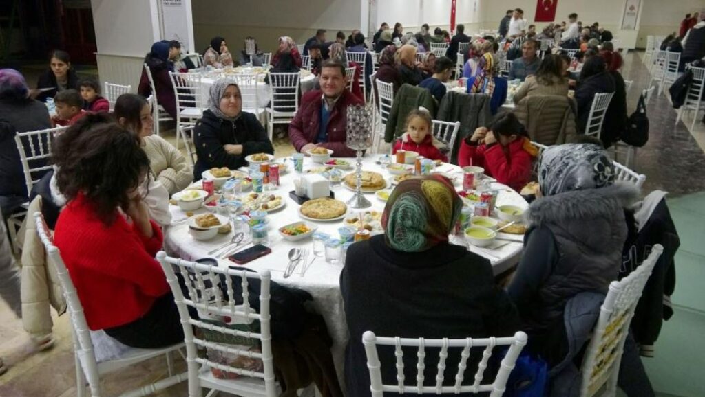 Kentteki bir alışveriş merkezinin düğün salonunda düzenlenen iftar programı, Kur'an-ı Kerim tilavetiyle başladı. Programda konuşan Sivas Vakıflar Bölge Müdürü Cemal Karaca, vakıftan gıda yardımı alan aileler ve burs sağlanan öğrencilerin ve depremzede ailelerin de aralarında bulunduğu 550 ihtiyaç sahibiyle iftar sofrasında bir araya gelmenin mutluluğunu yaşadıklarını söyledi. Karaca, “İnsanlığın var olduğu günden itibaren içgüdüsel olarak gösterilen yardımlaşmaya, dayanışma ve davranışın kurumsallaşmış haliyle işte bu şekilde vakıflar ortaya çıkar. İslam dininin emirleri arasında yer alan zekat ibadetinin adeta vücut bulmuş halidir. Vakıflar olarak insanların dinine, diline, ideolojisine ve ırkına bakmadan yanlarında oluyor, her ne kadar devletin bir kurumu olsak da Türk İslam medeniyetinin getirdiği, atalarımızdan bize miras kalan yardımlaşma düsturuyla hizmetlerimizi sürdürüyoruz” dedi.