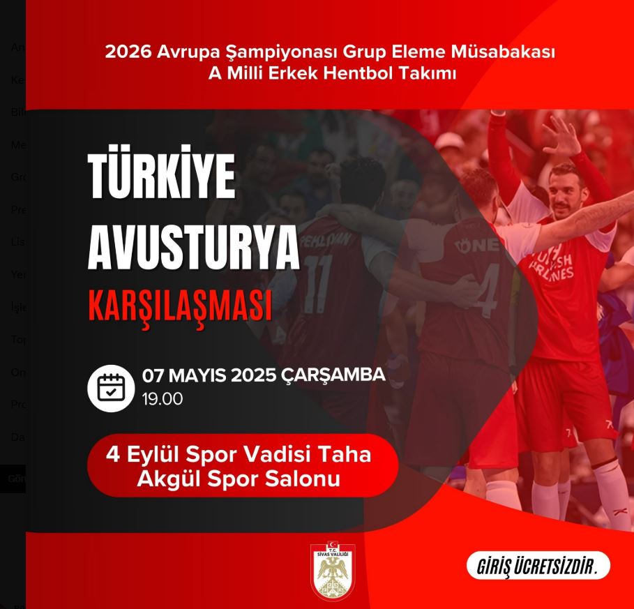 A Milli Erkek Hentbol Takımı, 2026 Avrupa Şampiyonası Grup Eleme müsabakası kapsamında Avusturya ile karşı karşıya gelecek. Karşılaşma, 7 Mayıs 2025 Çarşamba günü saat 19.00’da 4 Eylül Spor Vadisi Taha Akgül Spor Salonu’nda oynanacak.
